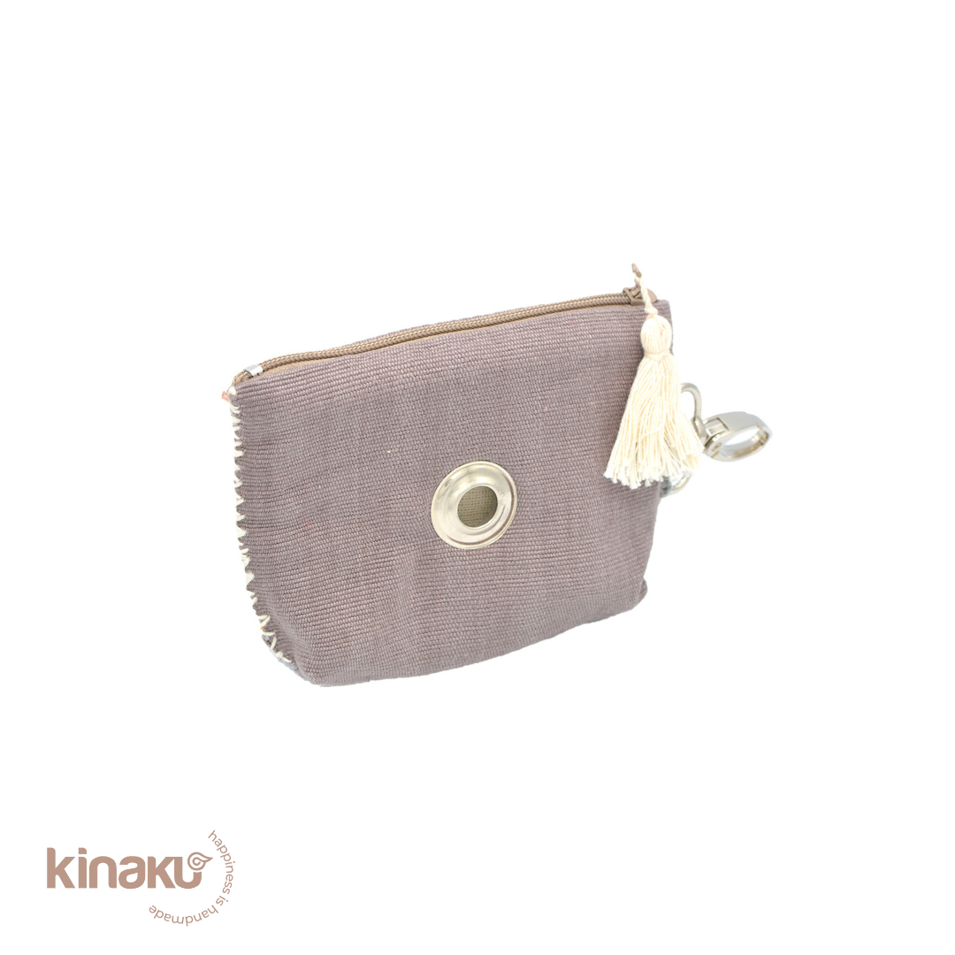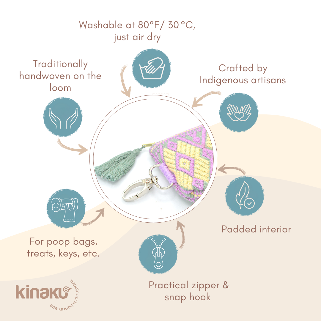 Hochwertiger Gassianhänger für Kotbeutel aus handgewebtem Stoff.