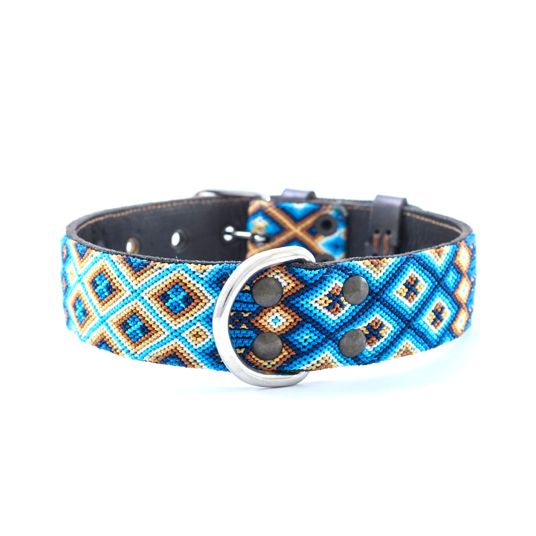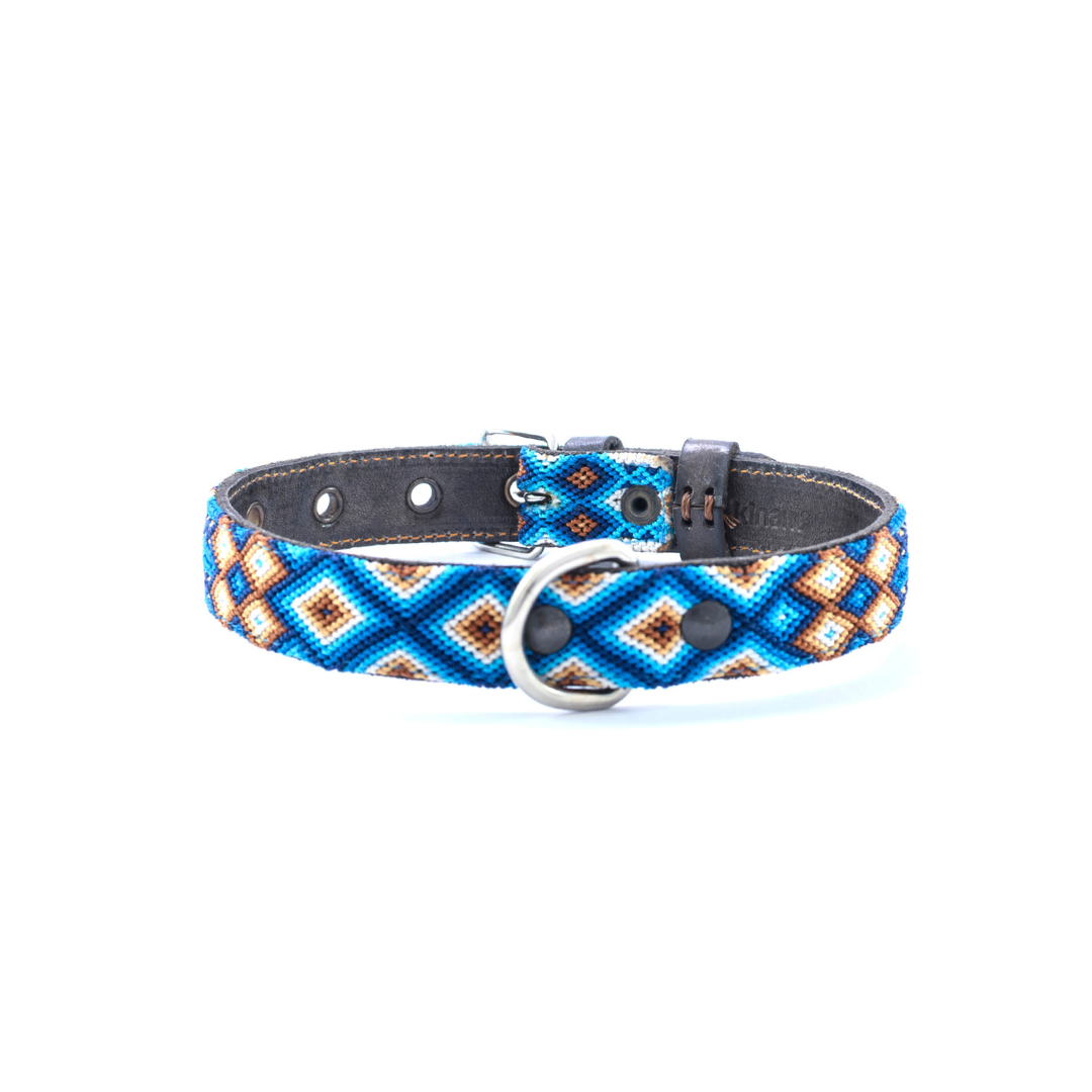 Kinakú colliers pour chiens sont tissés a la main, unique et cousu sur de vrai cuir.