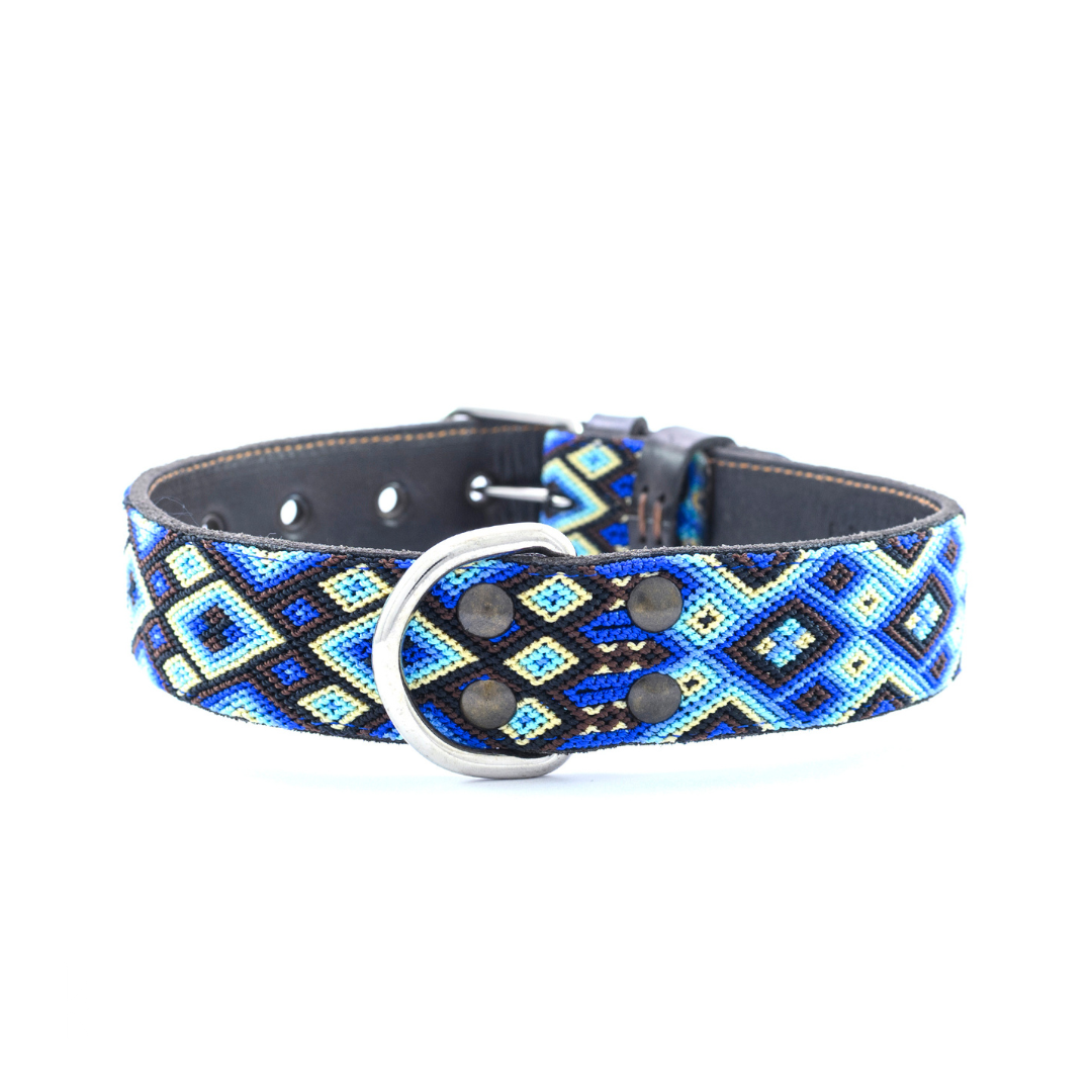 Kinakú dog collars are hand-knotted, unique, and stitched onto genuine leather.