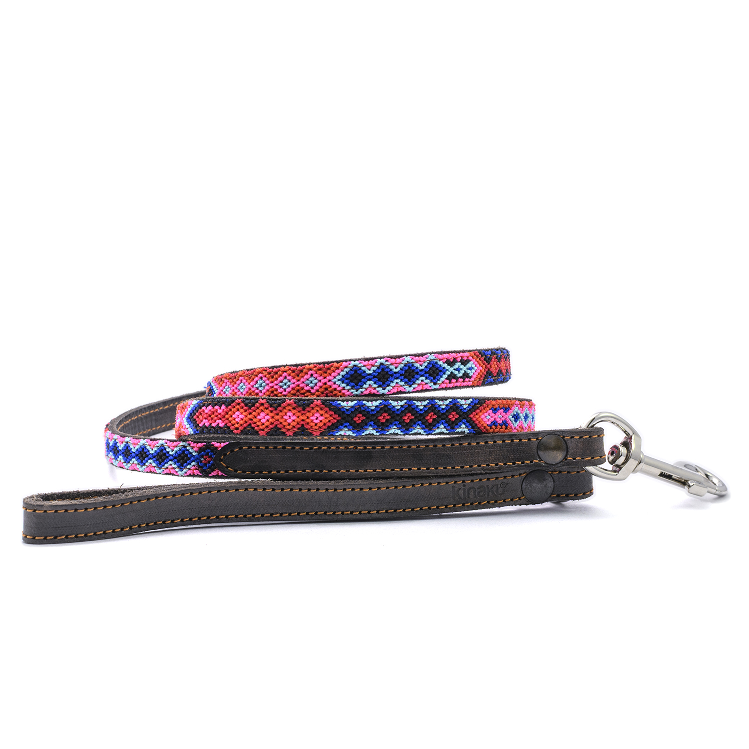 Kinakú dog leashes are handwoven, unique and sewn on genuine leather.