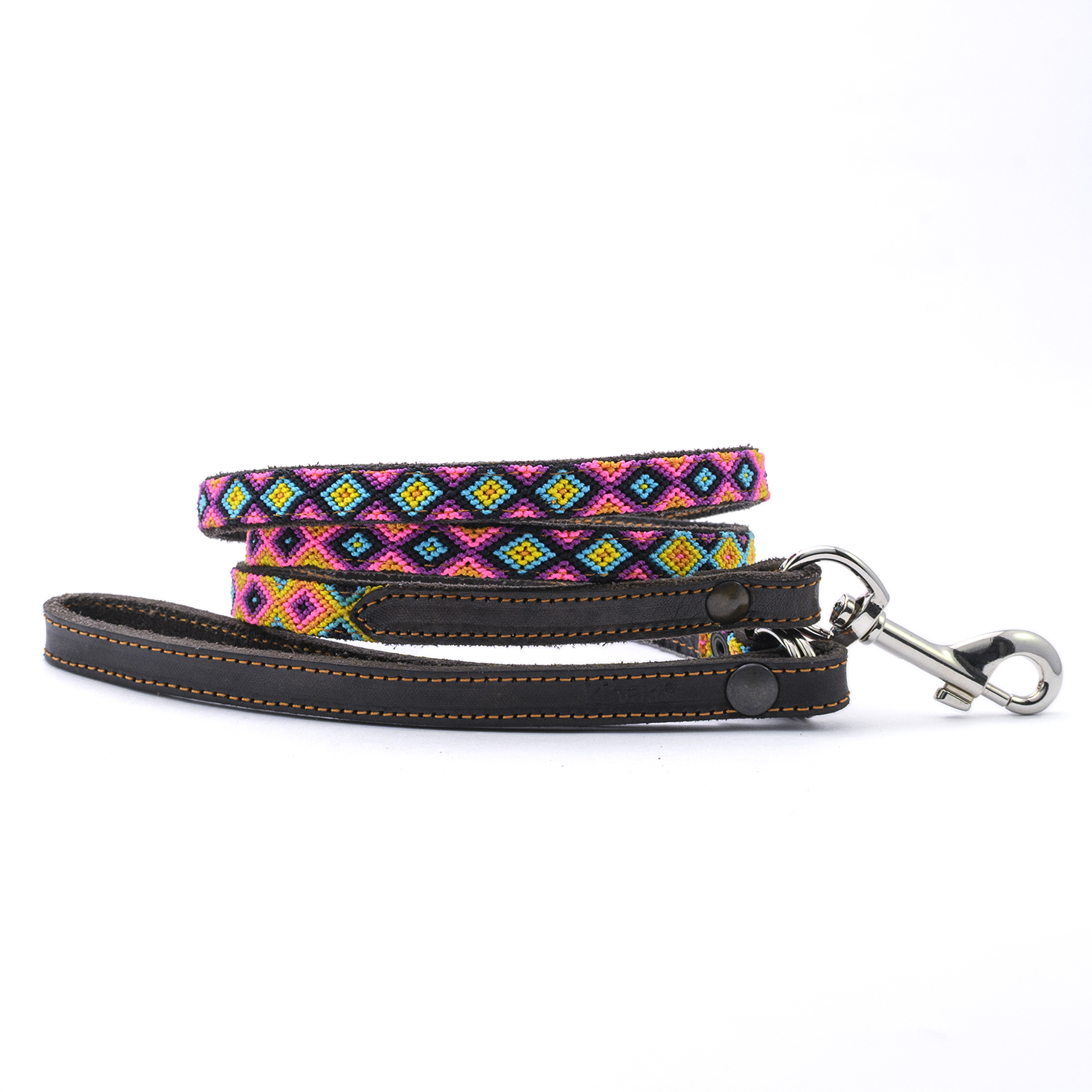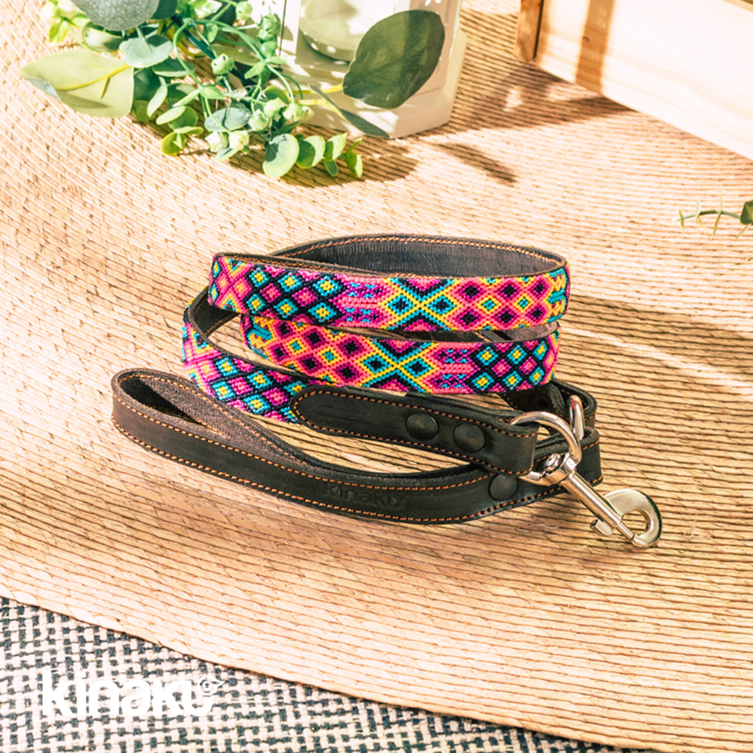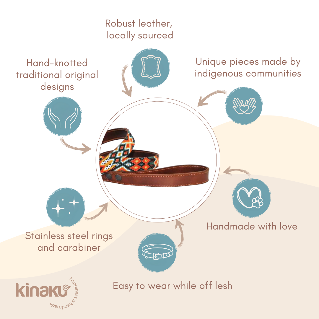 Kinakú dog leashes are handwoven, unique and sewn on genuine leather.