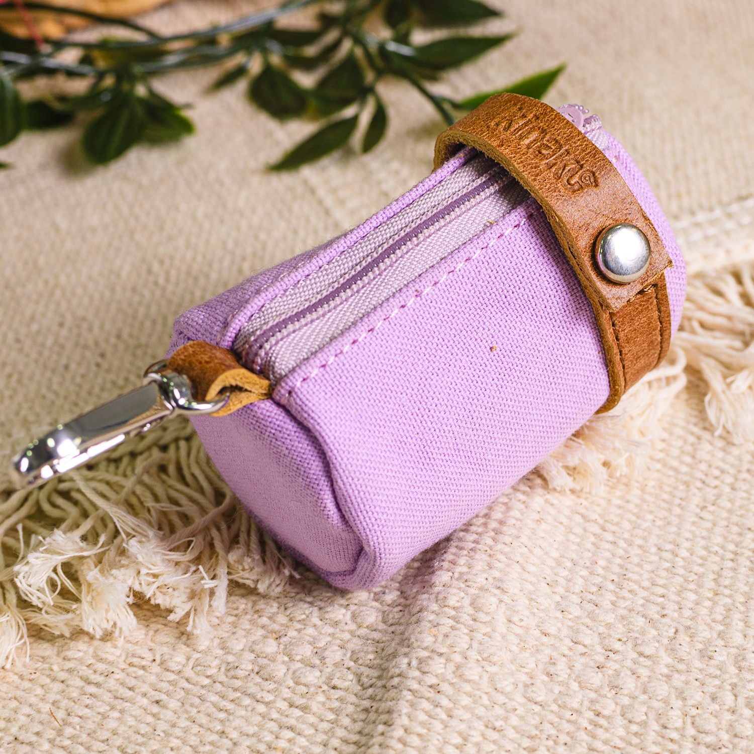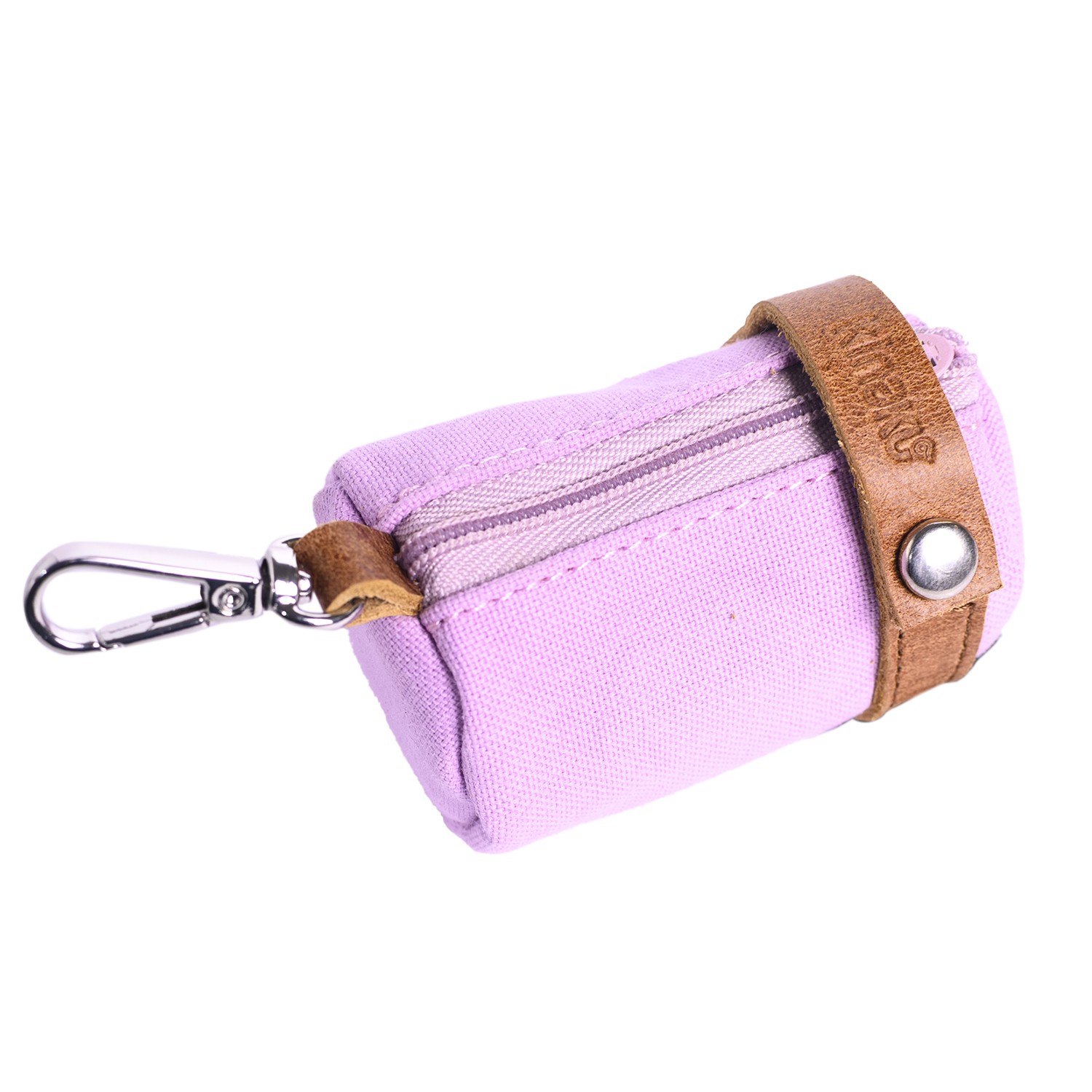 Handgemachter Gassianhänger für Hundekotbeutel aus Canvas Stoff und Lederriemen.