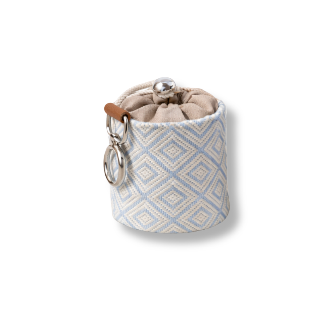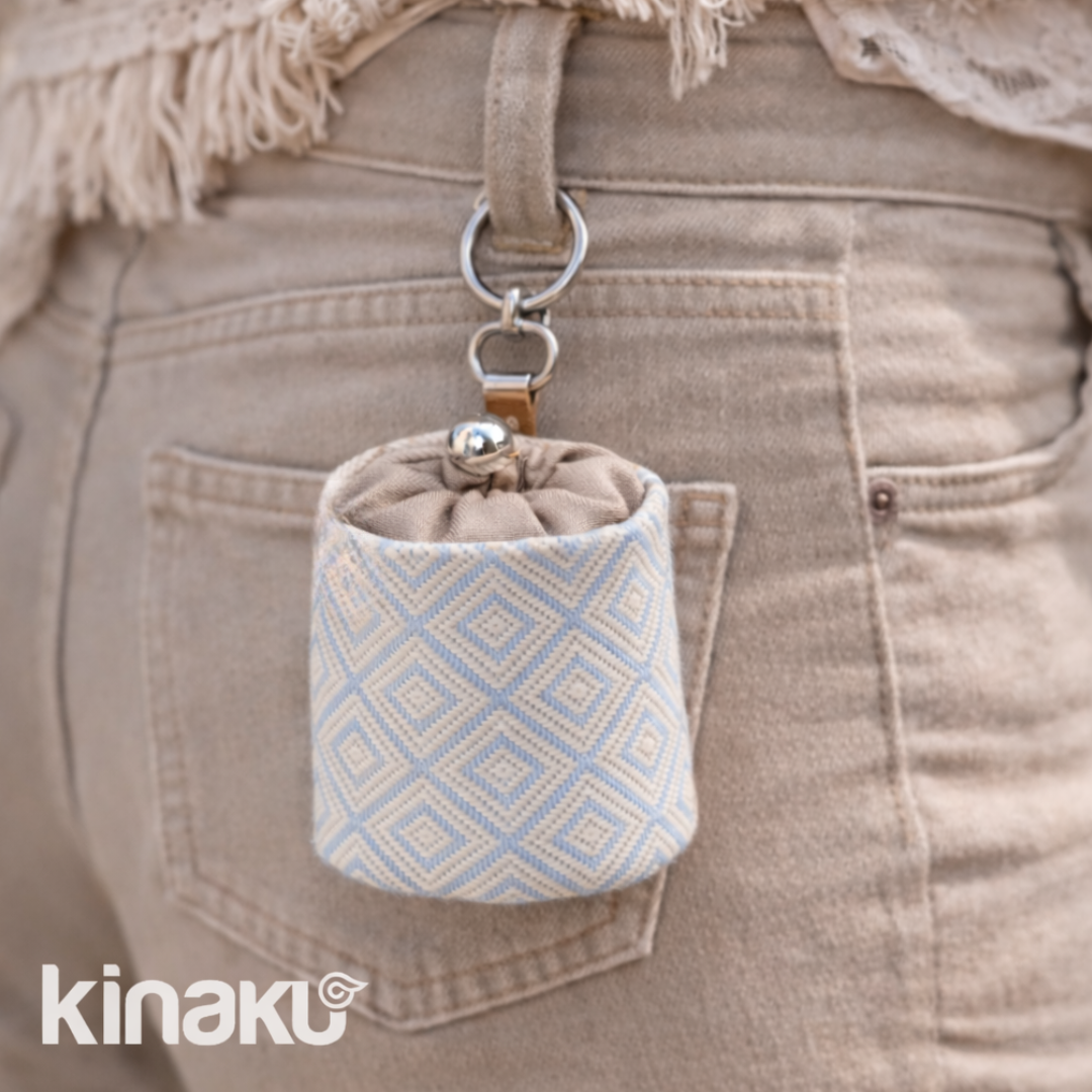 Handcrafted snack bag from Mexico with a wipeable nylon lining, easily attachable to belt loops, waist bags, or the dog leash — practical, stylish, and perfect for everyday walks with your dog.