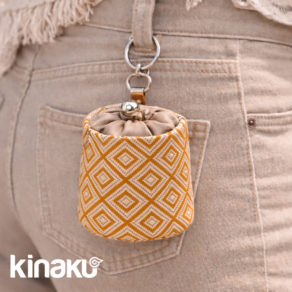Handcrafted snack bag from Mexico with a wipeable nylon lining, easily attachable to belt loops, waist bags, or the dog leash — practical, stylish, and perfect for everyday walks with your dog.